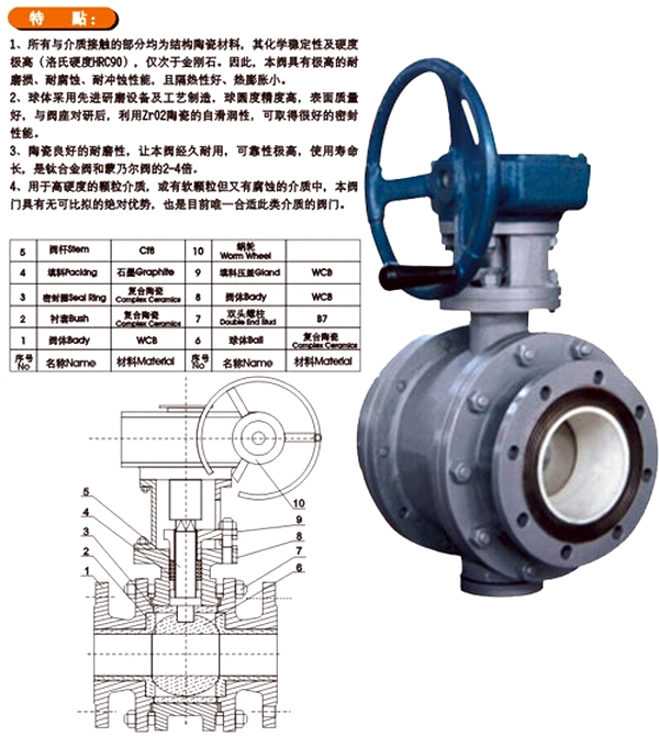 提示:本文中所有文字、數據、圖片均只適用于參考,需要了解更詳細的【蝸輪陶瓷球閥】參數、選型、價格等請聯系我們,我們將竭誠為您服務!