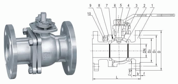 高平臺德標(biāo)球閥外形結(jié)構(gòu)圖: