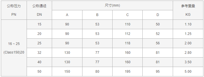 CS19H、CS69H熱動(dòng)力式蒸汽疏水閥外形尺寸表: