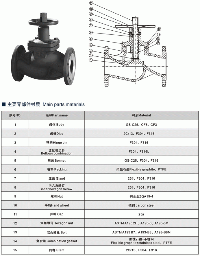 暗桿式德標波紋管截止閥是公司引進德國先進技術,采用先進的金屬波紋管密封技術制造,高性能金屬波紋管,波紋管密封截止閥采用波紋管密封的設計,完全消除了普通閥門閥桿填料密封老化快易泄露的缺點,不但提高了使用能源效率,增加了生產設備的安全性,減少了維修費用及頻繁的維修保養,還提供清潔安全工作環境。適用于公稱壓力PN1.6-4.0MPa,工作溫度-20~350℃的石油、化工、制藥、化肥、電力行業等各種工況的管路上,切斷或接通管路介質。