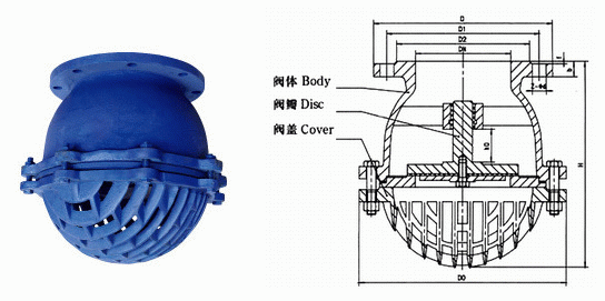 排污底閥由閥體,閥瓣,閥蓋,襯套,密封圈等零件組成,詳見下圖水源的水從閥蓋進入閥體。在流體的壓力作用下,閥瓣打開水,當示停后出口管內的壓力將閥瓣迅速關閉,液體將不會倒回水源,起到了即暢通抽水又節約水能損失的作用。