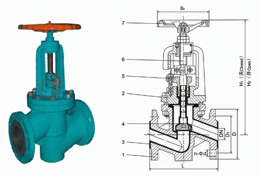 法蘭襯膠截止閥外形結構圖: