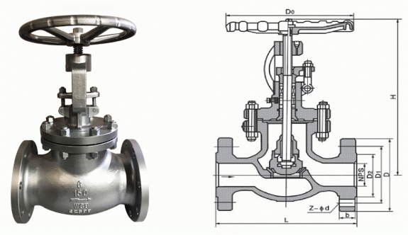 美標手動截止閥外形結構圖: