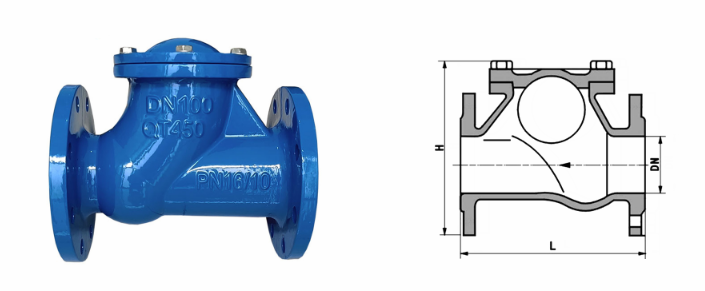 滑道滾球式止回閥產品密封性能好,消聲式關閉,不產生水錘,閥體采用全水流通道,流量大,流阻力小,水頭損失比旋啟式小50%,水平或垂直安裝均可,可用于冷水、熱水、工業及生活污水等管網系統中。